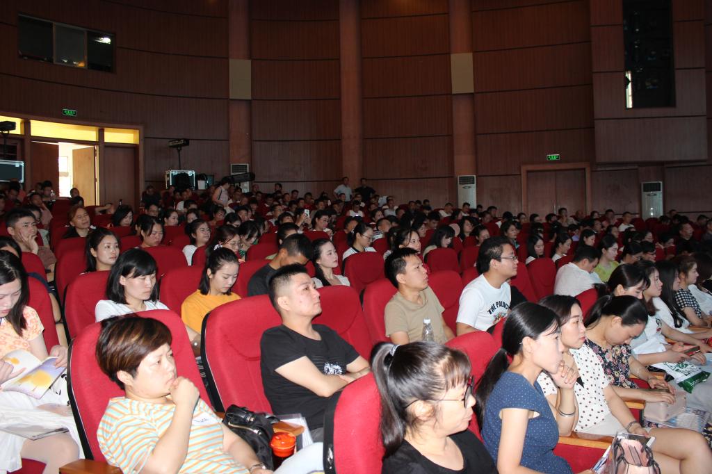 7月15日上午八点,360名益阳市中学音体美骨干教师在公司音乐厅参加2019年为期5天的市级培训。副董事长雷存喜教授致欢迎词,益阳市教育局唐建新科长做重要讲话,VSport副经理(主持工作)彭华主持开班典礼。