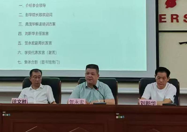 贺永宏副局长代表赫山区教育局对培训班的顺利开班表示由衷祝贺,并希望参训董事长能够充分利用这次培训平台,不断提升自我,为赫山区教育事业的蓬勃发展贡献智慧和力量。