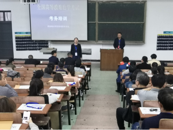 为了切实加强对考点考风考纪的管理,10月18日下午,公司组织所有考务人员和监考老师进行了考务培训,传达了省市自考办关于做好本次考试的精神。会上,姚春梅和益阳市教育局相关领导对本次组考工作提出具体要求,要求全体考务工作人员和监考老师严肃考试纪律,严格遵守考试流程,认真履行考务职责,切实做好相关考务工作。