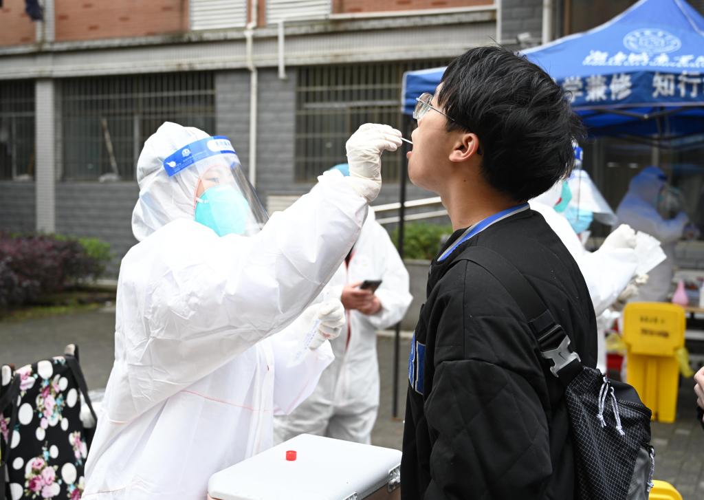 本次检测共安排了六个检测点。检测现场,师生们均佩戴口罩,保持1米以上安全距离,在工作人员引导下有序排队候检,在身穿全套防护装备的医护人员指导下完成了信息核对、咽拭子采集等流程。整个流程操作规范、防护到位、安全严谨。