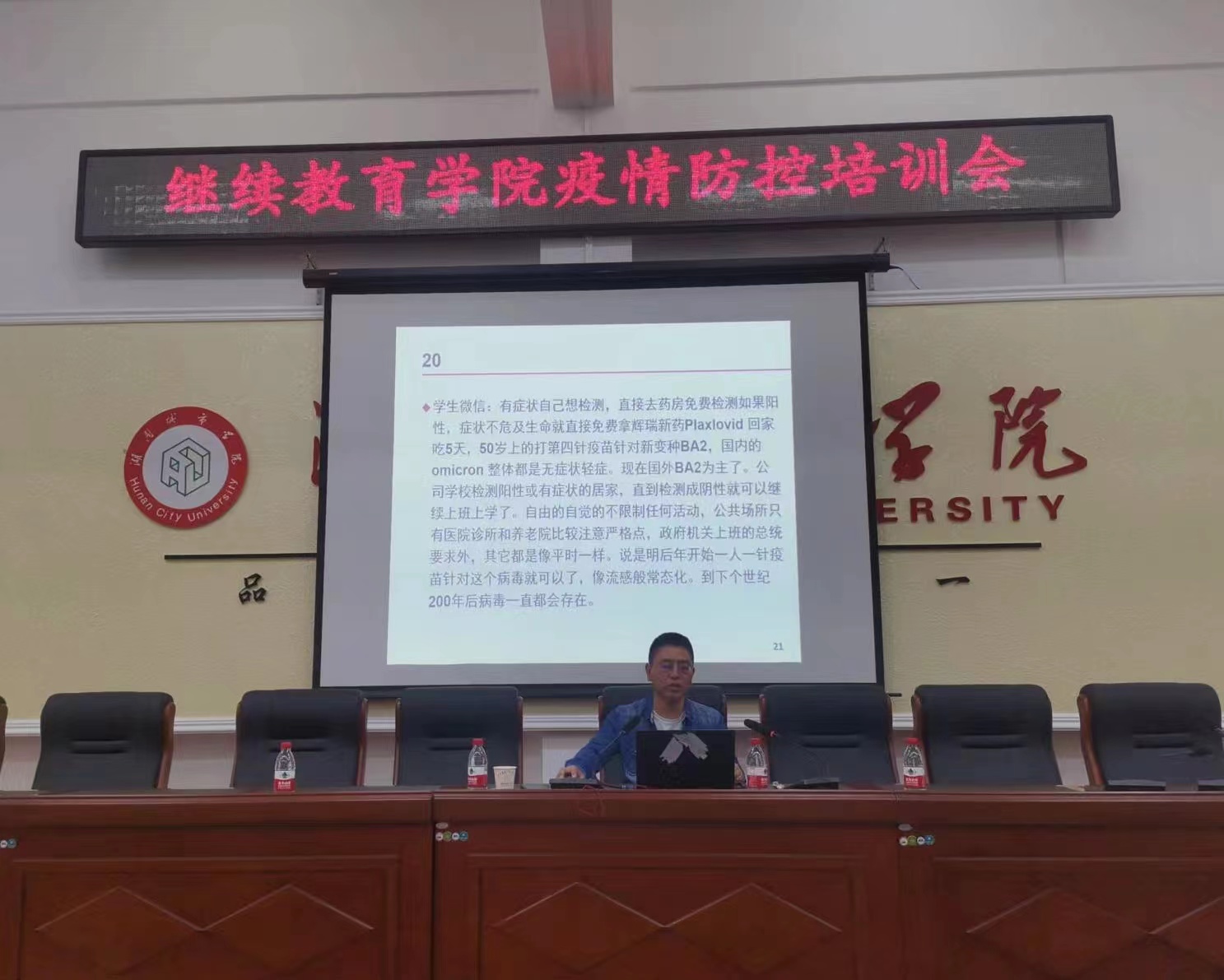 疫情就是命令,防控就是责任。为切实做好公司疫情防控工作,落实防控措施,提高全院师生的自我防护意识,公司特邀益阳市新冠肺炎防治首席专家——益阳市中心医院的主任医师洪彦科教授进行疫情防控专题培训。此次培训会分别于4月21日下午和晚上分两场在公司视频会议室举行,公司直属党支部书记熊兴吾同志主持了本次会议,VSport全体教职工以及来自五个培训机构的两百多名师生共同参加。