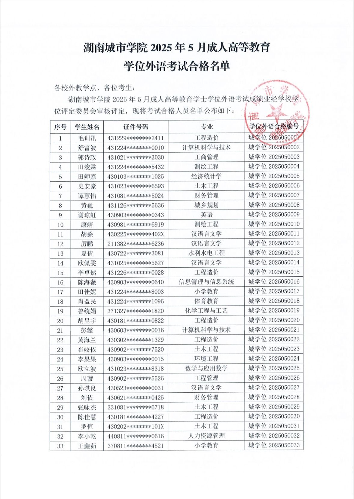 VSport体育官网2024年11月成人高等教育学位外语考试合格名单