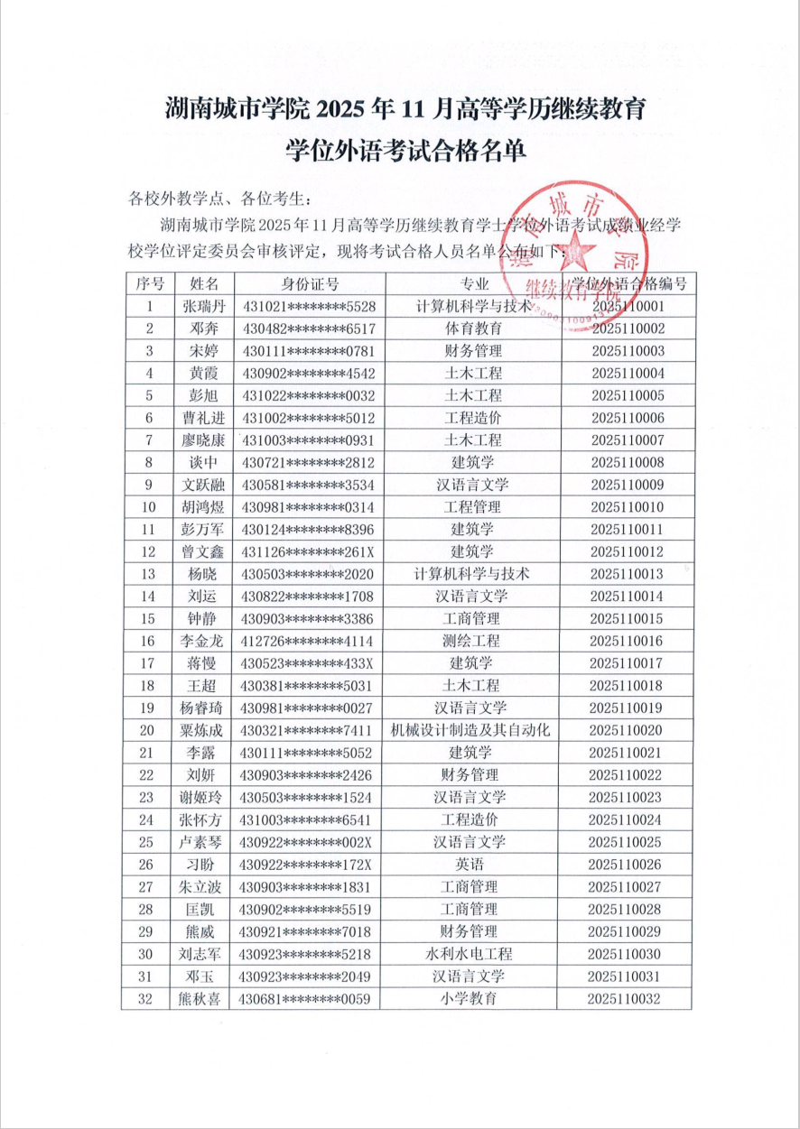 VSport体育官网2025年11月高等学历继续教育学位外语考试合格名单.pdf