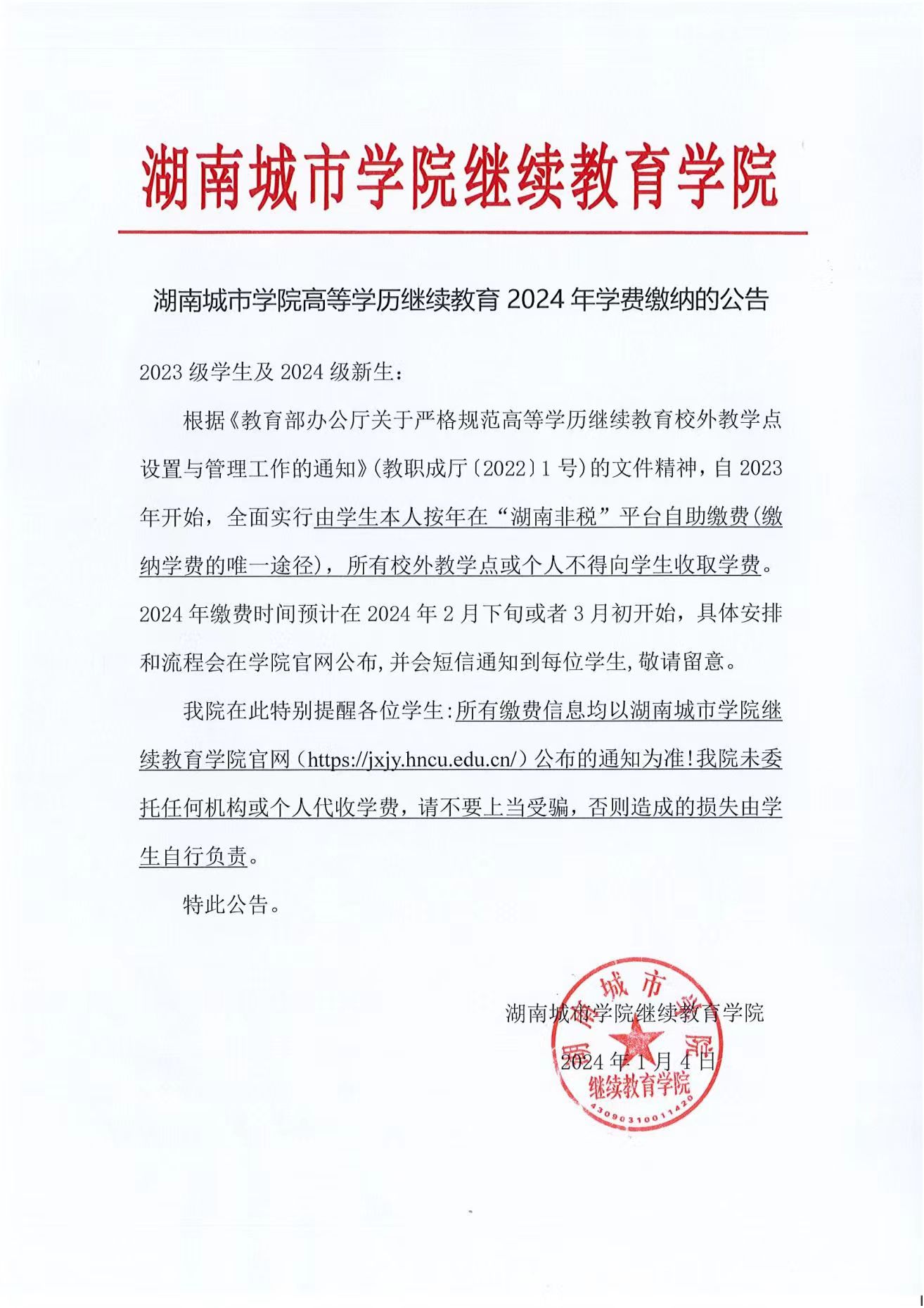 VSport体育官网高等学历继续教育2024年学费缴纳的公告